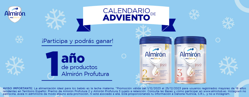 La Organización Mundial de la Salud (OMS) recomienda la lactancia materna exclusiva durante 6 meses, y continuar hasta los 2 años o más junto a la alimentación complementaria. Almirón apoya incondicionalmente estas recomendaciones. Consulta siempre con tu médico y/o matrona cualquier duda sobre la alimentación de tu bebé.